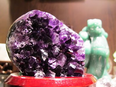 Brett's clusters are here ranging from $68 to $88, and comes with awooden stand. These are Uriel Deep Purple Amethyst clusters worth keeping in office and home to improve "Qi". In office, as a support by placing your namecard in front to remove all bad "Qi".