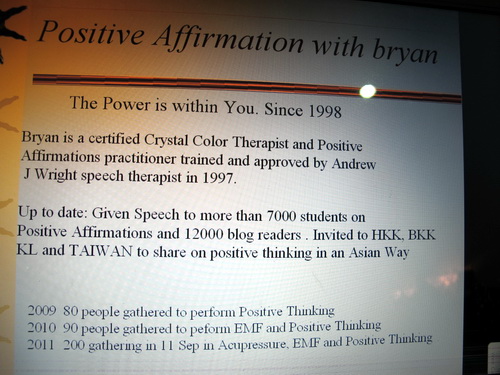 2011 200 people gathering on 11 Sep in Positive Food and Acupressure, EMF and Positive Thinking