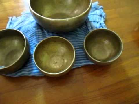 These singing bowls have been with me for a long time. Each of them has a history of 100 years. They formed part of my music therapy training.